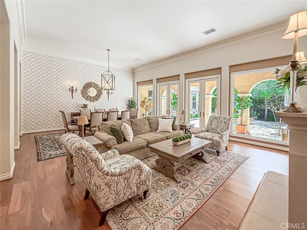 Beautifully updated and thoughtfully designed, this elegant single-story residence is located within the gated Signature Collection of Westlake Village, an exclusive enclave known for its privacy and picturesque Santa Monica Mountain surroundings. The home offers a spacious and refined open layout featuring formal living and dining areas that open to a charming outdoor courtyard, creating a seamless setting for both everyday living and gracious entertaining. At the heart of the home, the inviting family room with fireplace flows effortlessly into the gourmet kitchen, complete with professional appliances, a butlers pantry, sunny breakfast area, and a redesigned island highlighted by a new stone countertop. The private primary suite serves as a luxurious retreat with direct access to the backyard, dual walk-in closets, and a spacious spa-like bath, while three additional en-suite bedrooms provide comfort and privacy for family and guests. Over the past three years, the home has been extensively enhanced with leased solar and two Tesla Powerwalls, a refinished PebbleTec pool and spa, a new motorized louvered pergola for year-round outdoor enjoyment, wood flooring added in the secondary bedrooms, new carpet in the primary suite, a new front door, upgraded garage doors with overhead storage racks, designer interior paint and wallpaper accents, and a whole-house water filtration system. The beautifully landscaped backyard offers multiple patio areas, fruit trees, and tranquil mountain views, creating a peaceful outdoor retreat just minutes from Westlake Villages premier shopping, dining, parks, hiking trails, and the award-winning Conejo Valley Unified School District.