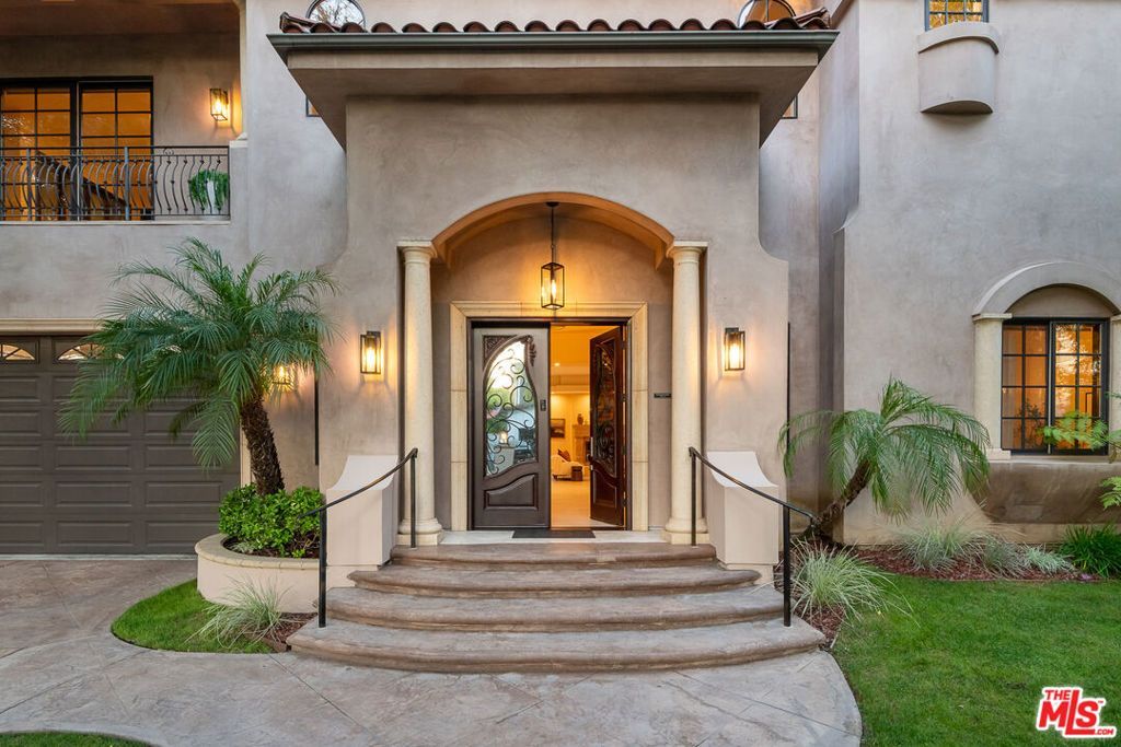 Elegant custom-built and nearly 5,000 sf, 6 bed, 6 bath estate in coveted Libbit Park offers a rare blend of architectural character and contemporary comfort. The property is set back from a privacy wall on lower Valjean Avenue, a wide and quiet street with leafy trees and no pass-through traffic. The home -- set among other similarly sized properties -- makes a striking first impression with classic smooth stucco, tile roof, mature and new landscaping, and refined arched detailing. Through mahogany double doors, the entry foyer is an architectural moment that sets the tone for the home's craftsmanship and scale. Inside, a graceful curved staircase accented by wrought-iron balustrade with circular detailing and designer white onyx wall sconces frame a European stone fireplace in the living room. Sunlight touches refinished travertine floors through cathedral-type arched clerestory windows near double height (~24 feet) coffered ceilings. The main 2400 sf floor open concept layout with living-family great room flows seamlessly to the backyard through wood-framed sliding dual-pane glass and French doors. The home's overall design offers long sightlines, high 12 ft ceilings, and effortless indoor-outdoor living. A large chef's kitchen anchors the home with chef-quality appliances (built-in GE Monogram suite, Viking six-burner/dual oven range, two dishwashers, three sinks), large center island, custom cabinetry, and direct outdoor access -- ideal for modern lifestyles. A well located formal dining room, to the right of the entry and adjacent the kitchen, sets the stage for life-cycle and holiday gatherings with family and friends. Upstairs, the property has an open air library with built-in bookshelves, and four spacious ensuite bedrooms each with outdoor balconies, warm wood finishes, and a refined esthetic. The nearly 830 sf primary suite has its own fireplace, two balconies, large walk-in and second built-in closet, and spa-inspired bathroom. A private backyard is framed by mature hedging and new landscaping that invite relaxation by the pool / hot tub or entertaining near the outdoor built-in BBQ. Downstairs, two additional rooms provide abundant options for guests or live-in nanny, home theatre, office, and/or gym. A high ceiling garage with built-in cabinetry has ample storage and room for large vehicles. 4910 Valjean offers a rare opportunity to own a well maintained and recently built (2008) custom home with scale, privacy, and enduring design, all in one of Encino's most desirable neighborhoods. In top rated Hesby Oaks Charter school district (K-8).