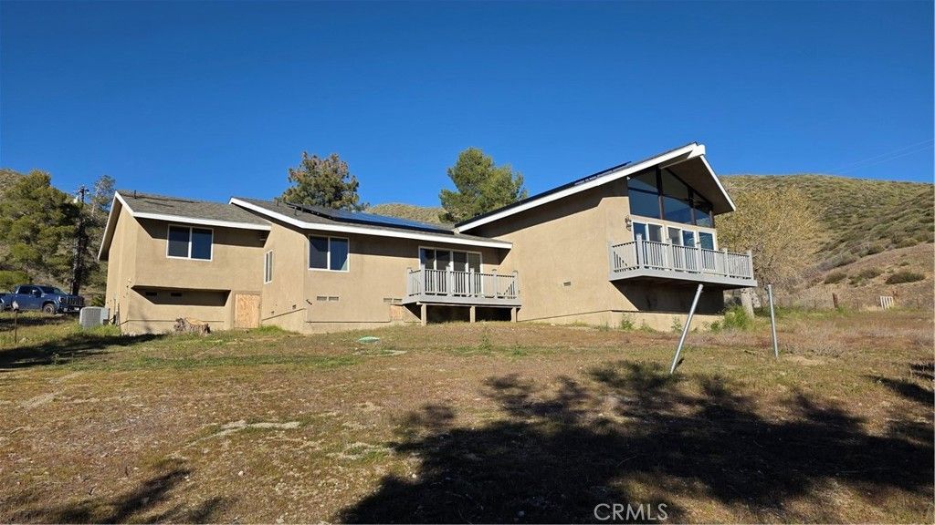 Welcome to your hidden paradise in Leona Valley. Recently remodeled, this beautiful home offers some of the most breathtaking views the valley has to offer. From the moment you step inside, youre welcomed by a stunning A-frame window that perfectly frames the landscape, with views stretching all the way toward Wrightwood and the surrounding mountains. Enjoy spectacular sunsets from your private balcony, or unwind on cozy evenings by the fireplace while taking in the peaceful night sky. The spacious primary suite features dual sinks and a walk-in shower, creating a comfortable and functional retreat. On the north side of the home, youll find two additional bedrooms, each offering serene hillside views that enhance the homes sense of privacy and connection to nature. Nestled into the hillside, this property provides a quiet, secluded setting with its own private driveway and a large two-car garage. To the west, youll find expansive, gated yard space?perfect for horses, outdoor living, or simply enjoying the wide-open beauty that Leona Valley is known for.
