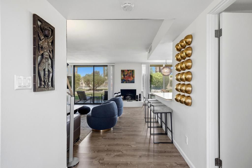 Welcome to Bermuda Dunes Country Club--where timeless design meets modern luxury. This beautifully furnished two-bedroom, two-bath condo features a light-filled open floor plan that seamlessly blends indoor and outdoor living. Located just steps from the year-round heated community pool and spa, it offers the perfect balance of convenience and relaxation. Enjoy serene views from multiple private patios, ideal for unwinding or entertaining. Additional highlights include an attached golf cart garage and a designated covered parking space. Perfect for those seeking a comfortable and stylish home in a peaceful desert setting. Golf and Social Club memberships are available.
