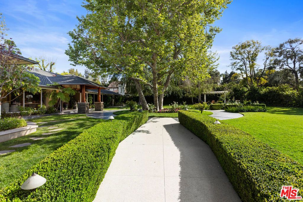 Tucked behind gates in Encino's coveted Music Row neighborhood, this extraordinary estate of legendary guitarist Steve Vai spans nearly two private acres, offering a rare blend of privacy, natural beauty, and creative history. The 10,000+ square-foot mid-century residence is thoughtfully designed with five ensuite bedrooms, expansive living and entertaining spaces, seamless indoor-outdoor flow, and an additional 3,000 square feet which include a studio, gym, pool house, and wine room. The home features original terrazzo pathways and rich acacia wood flooring, a chef's kitchen with cherry wood cabinetry, Carrara marble countertops, skylight and Kokomo glass sliders that open to an inviting indoor-outdoor patio complete with BBQ and pizza oven- ideal for entertaining. At the heart of the property lies the legendary Harmony Hut, a world-renowned recording studio designed and built by Steve Vai with meticulous attention to acoustics, materials, and sonic precision. Revered by musicians across the globe, it stands as a true creative sanctuary where decades of music have been conceived and brought to life. The estate's grounds unfold as a private retreat, featuring a pool, championship tennis court, and multiple outdoor living areas. Lush landscaping and mature trees create a sense of tranquility, while the location offers convenient access to the city's most desired destinations More than a home, this is a one-of-a-kind compound and a sanctuary of inspiration, offering a rare opportunity to own a work of art and a piece of modern music history.
